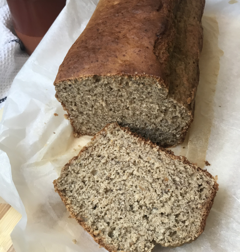 Hoy os traigo esta receta de pan de plátano con tahini o la crema de semillas de ajonjolí o de sésamo. Un panqué super esponjoso, saludable y delicioso.